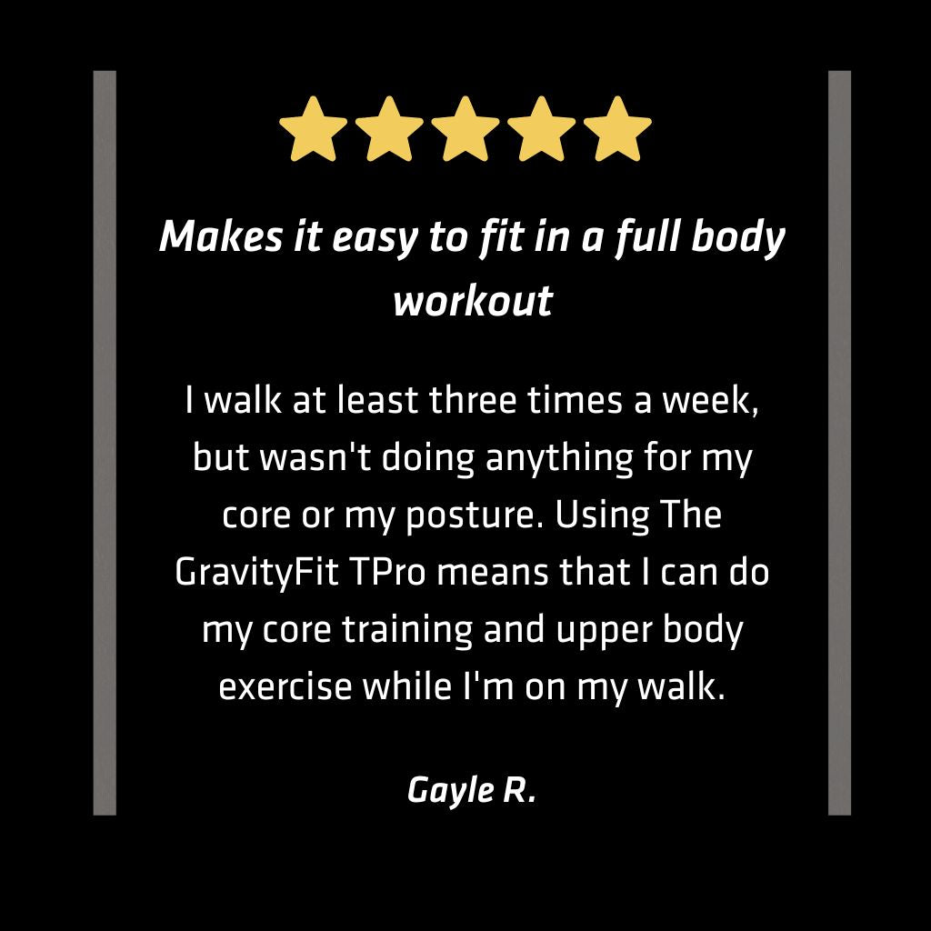 Exercise your core, your posture and your upper body anywhere, anytime with the GravityFit TPro. Includes a library of exercies from simple to advanced.