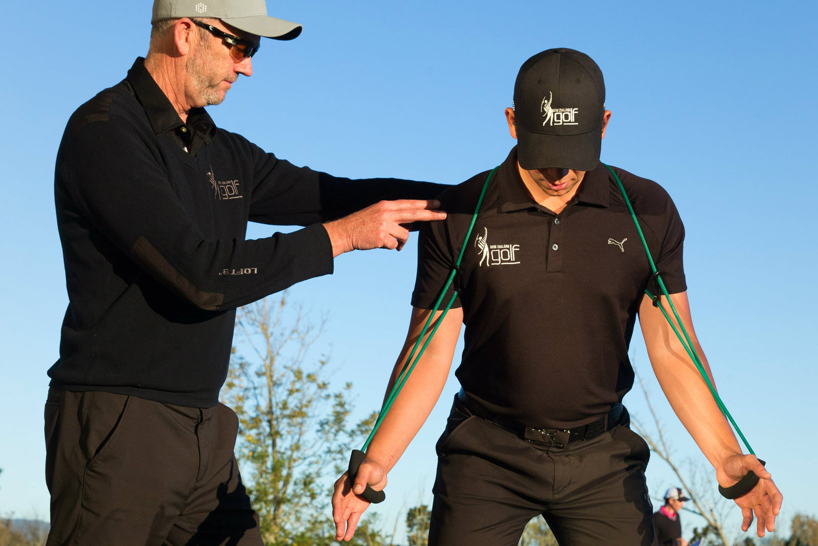 In the example shown, the TPro is used for posture awareness, thorax–pelvis balance, side bend, and rotation. The process starts with dry drills (no club), then partial swings, then full swings. After removing the TPro, players transfer that feedback into their routine.